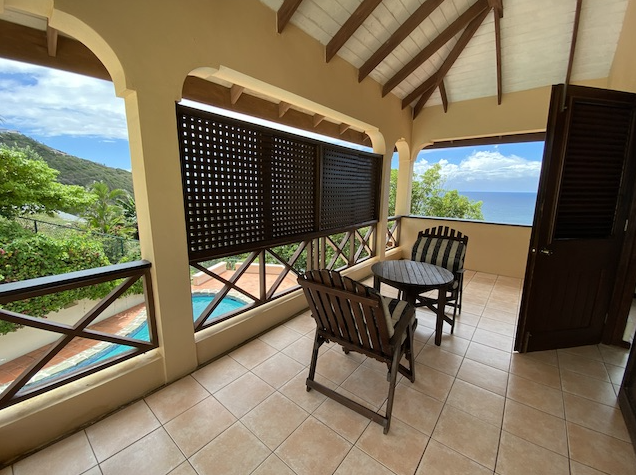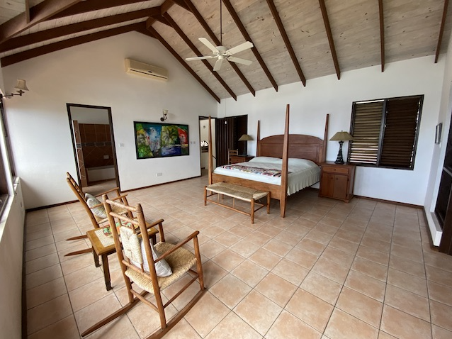 The main house features 3 En-suite bedrooms, each with ceiling fans and air-conditioning, with views of the Ocean and Anse Galet Bay. The master bedroom encompasses the floor upstairs in its entirety and the other bedrooms are downstairs along with laundry room.
