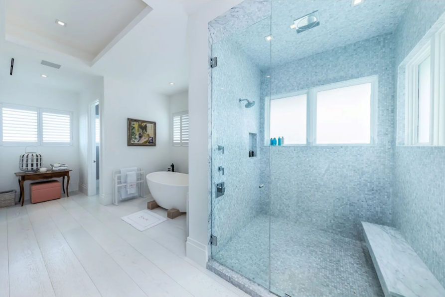At the heart of 5 Oceans lies the main residence, a modern island masterpiece. White oak floors, soaring ceilings, and expansive glass walls define the open-concept living, dining, and kitchen areas, all oriented to capture unobstructed ocean views.