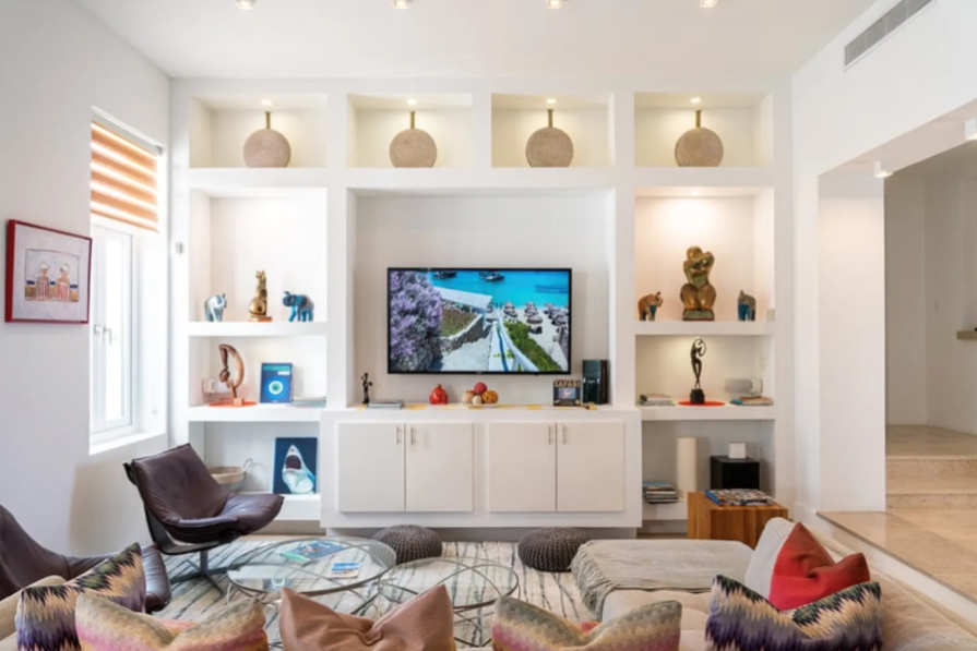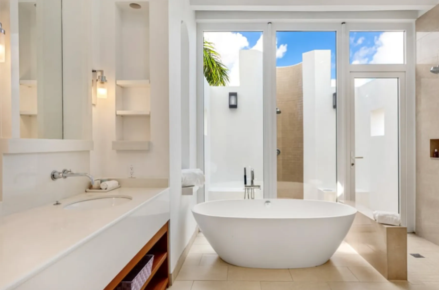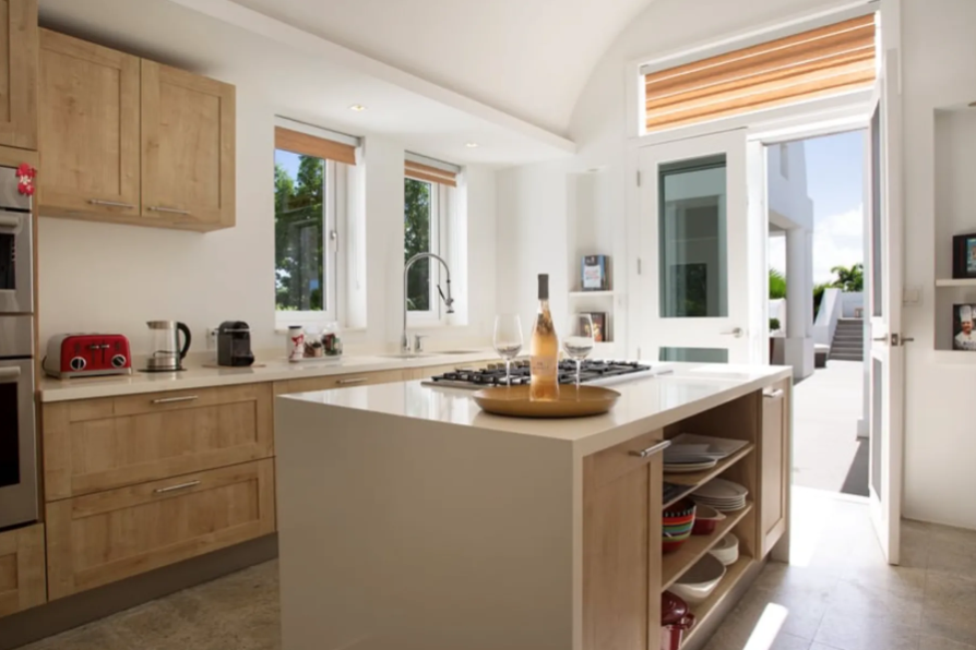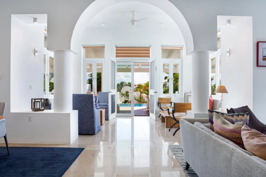 A vision in white, the villa is a modern architectural gem that harmonizes effortlessly with its spectacular surroundings. Set on a generous lot, the property features 4,800 square feet of air-conditioned interiors and over 10,000 square feet of outdoor living space, designed for both indulgent relaxation and elegant entertaining. The estate’s pool, jacuzzi, and outdoor BBQ area create the ultimate backdrop for soaking in the island’s serenity and sunshine.