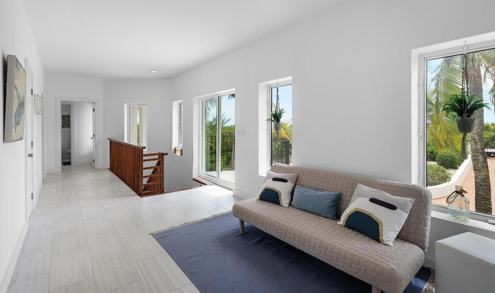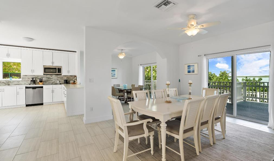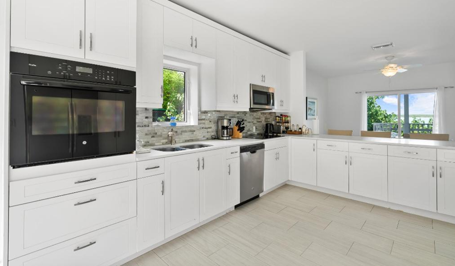 Renovated in 2018 with further upgrades in 2023—including new hurricane-rated sliding doors—the villa is fully turnkey and already generating strong short-term rental income, making it an exceptional opportunity for both personal enjoyment and investment. Inside, the light-filled open-concept living and dining spaces flow seamlessly to a chef’s kitchen featuring Caesarstone countertops and new stainless-steel appliances, all framed by panoramic views of the world-famous turquoise waters of Chalk Sound National Park.