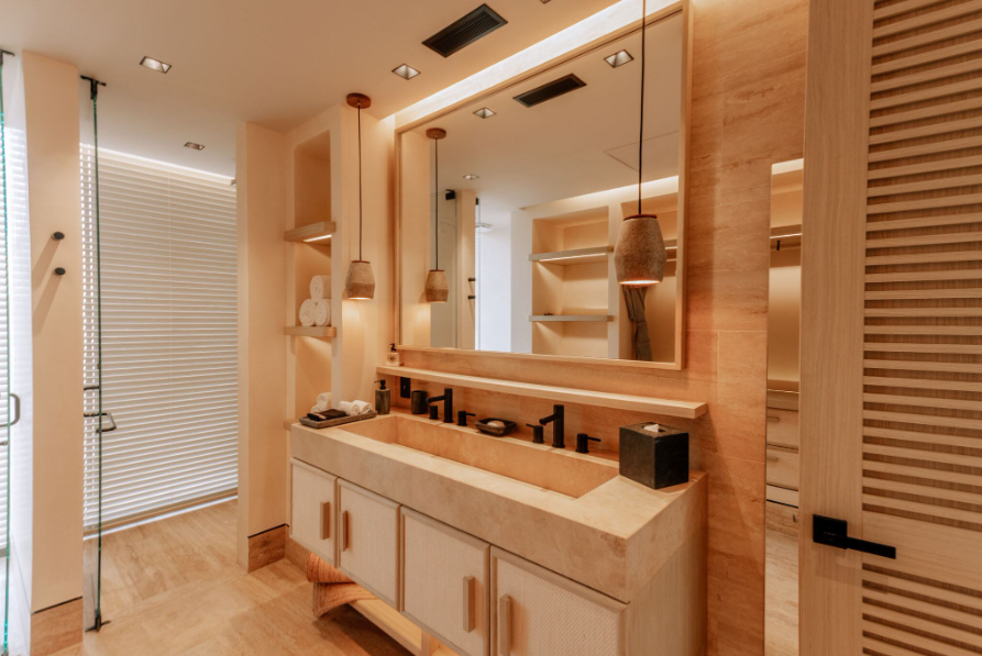 The expansive outdoor terraces take full advantage of the Riviera Maya’s tropical climate. They feature a Jacuzzi, an outdoor kitchen, and a generously sized living and dining area, all perfect for al fresco gatherings or simply unwinding to the sound of the waves. The direct elevator access enhances privacy and convenience, while high-end finishes throughout the home add an extra layer of sophistication to this remarkable property.