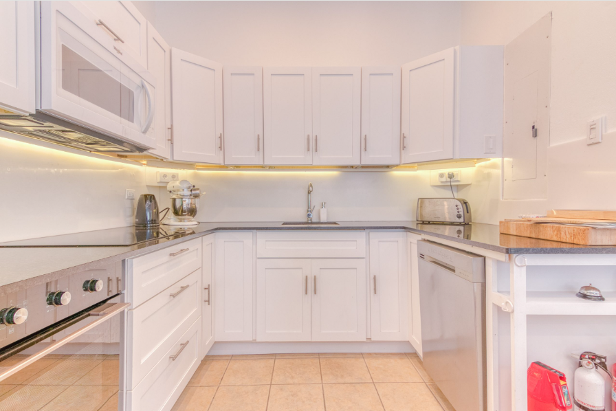 The living and dining area is spacious enough to entertain guests or relax in peace, while the fully equipped kitchen is ideal for preparing island-inspired meals. The layout is designed for effortless indoor-outdoor living, a hallmark of Caribbean homes for sale in Sint Maarten.