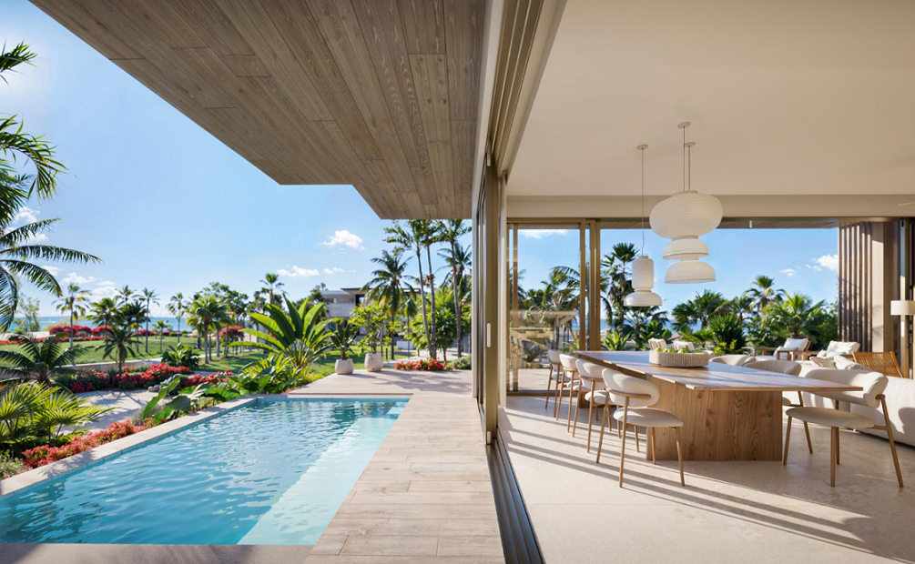 For those seeking the pinnacle of seafront living, the development’s four one-story private villas offer six spacious ocean-facing bedrooms, expansive interiors, and private pools—true sanctuaries of distinction. Now available is this beautiful ground-floor three-bedroom, three-and-a-half-bathroom corner unit in the highly Vincit building.