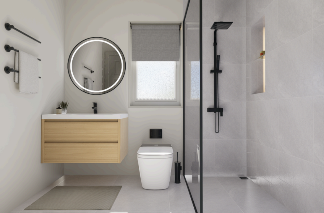 The primary double bedroom suite boasts built in wardrobes, an ensuite bathroom and a private balcony. Two additional upstairs double bedrooms, each have built in wardrobes, their own balcony and a shared bathroom. A ground-floor double bedroom guest suite with an adjacent bathroom ensures added convenience and accessibility. All bathrooms offer tranquility with soft tones and neutral palettes. All have rainfall showers and modern fixtures and fittings.