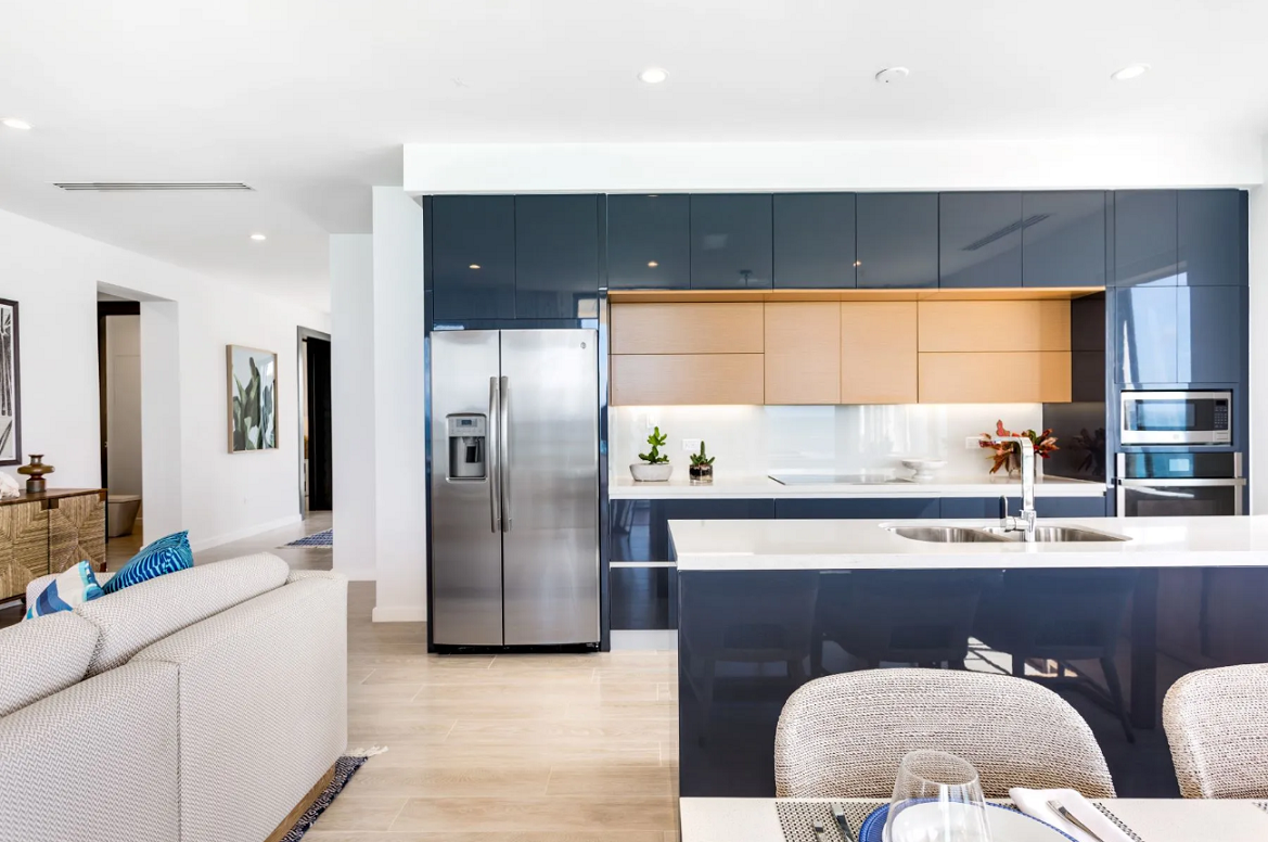 Tranquility Beach offers a total of 15 brand new, luxury condominiums across three buildings. Each building houses five residences, including two one-bedroom ground floor units, two one-bedroom middle floor units that can be combined to create a two-bedroom floorplan, and a three-bedroom luxury penthouse that spans the entire top floor.