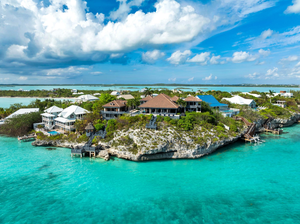 The estate rises above the ocean’s shifting blues, showcasing expansive views across Taylor Bay and the coastline beyond with 232ft of ocean frontage. The elevation delivers something few waterfront homes can: complete privacy paired with uninterrupted perspective.